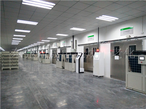 空气能三元里电池老化房的原理是利用逆卡诺循环原理,吸收环境中和充放电车间的热能,经热泵装置提升到为高温高品位的热能;冷媒(氟利胺)通过压缩机做功,变成为高温高压气体(温度高达80-115℃),进入室内侧的换热器,利用风机和冷凝器同烘干房内部空气来交换排放热量,升温三元里电池老化房内空气温度。加热后的热风通过给烘干房内的三元里电池加热老化,