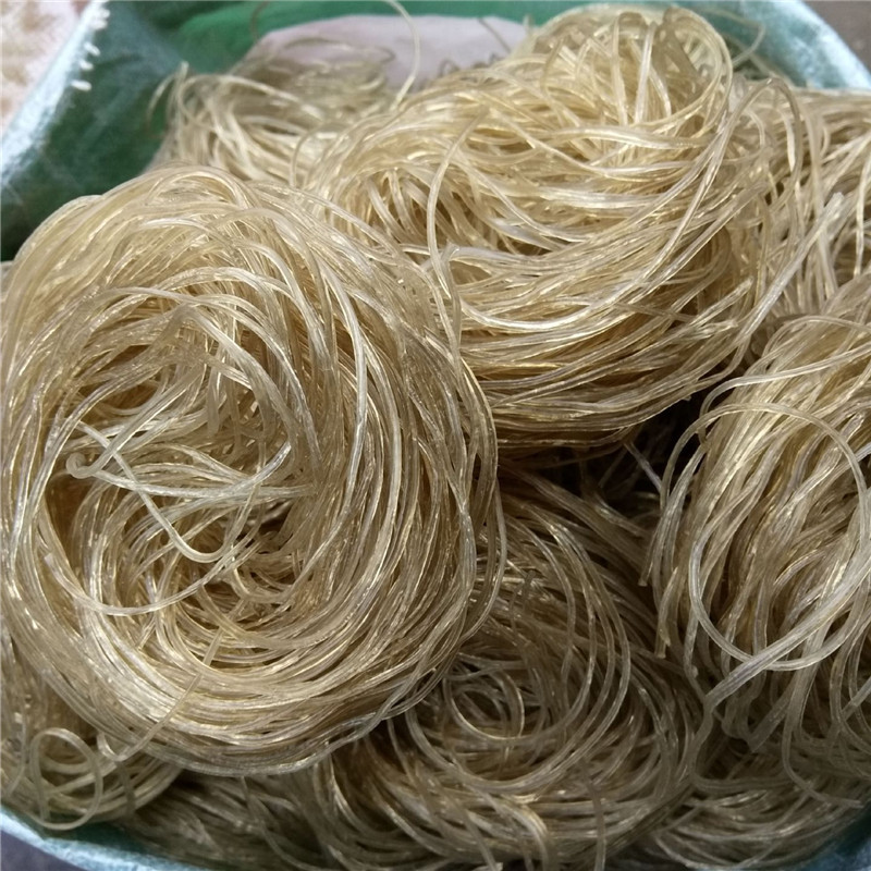 淀粉原料→打糊(制芡)→和面、抽真空→漏粉、煮粉糊化→冷却→切条、盘粉上杆→冷却(低温老化)→冷冻老化→解冻→烘干→包装